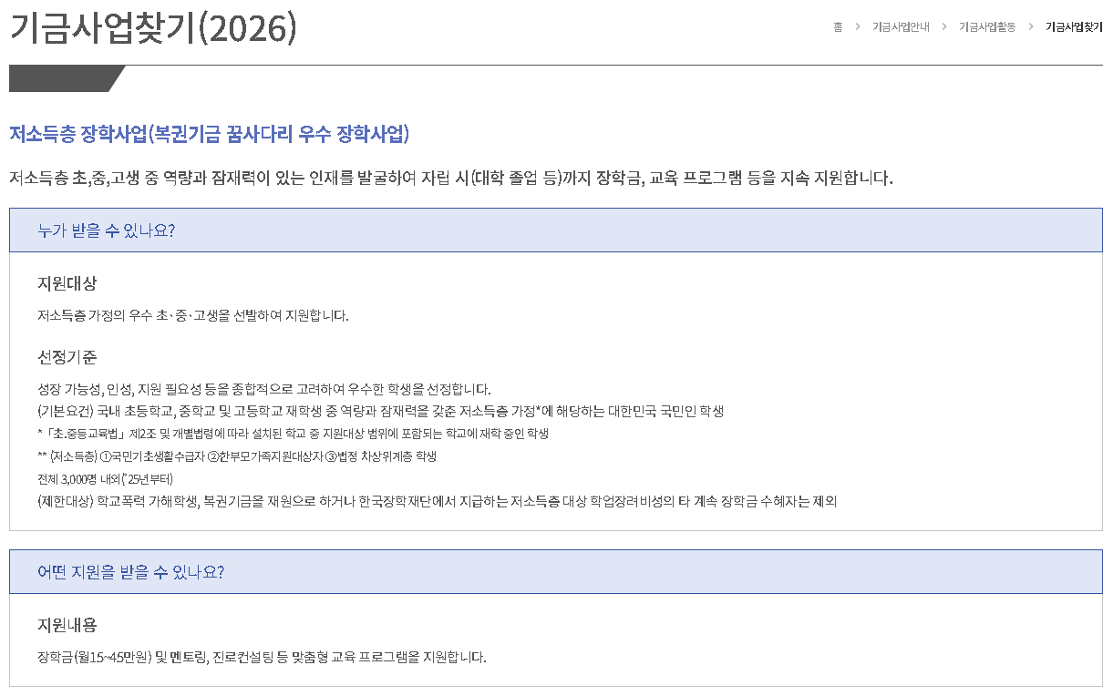 - 꿈·다문화 장학금: 2026년 4월 6일~4월 30일